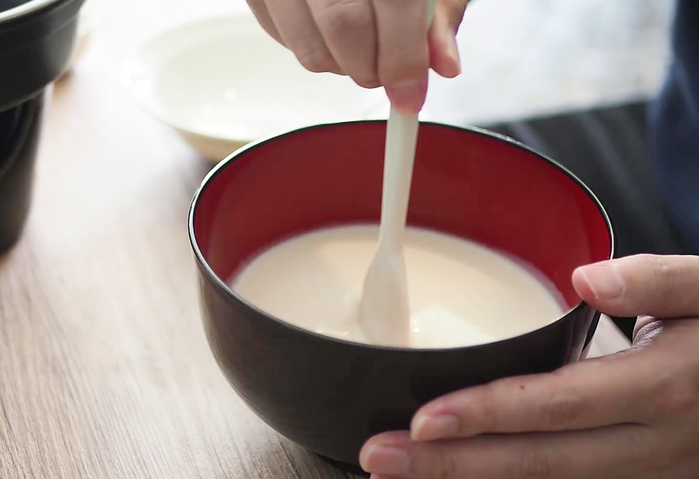 「豆乳」様に撹拌ヘラを投入